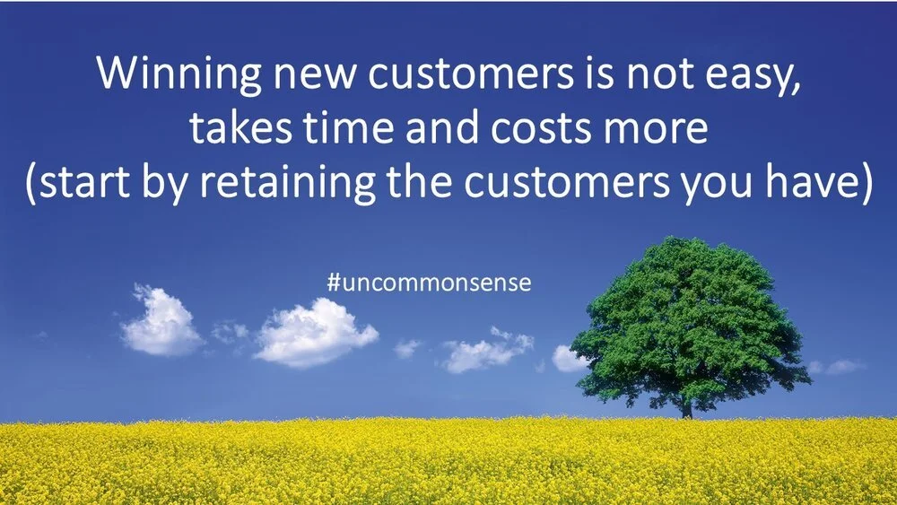 Winning new customers is not easy, takes time and costs more (start by retaining the customers you have)